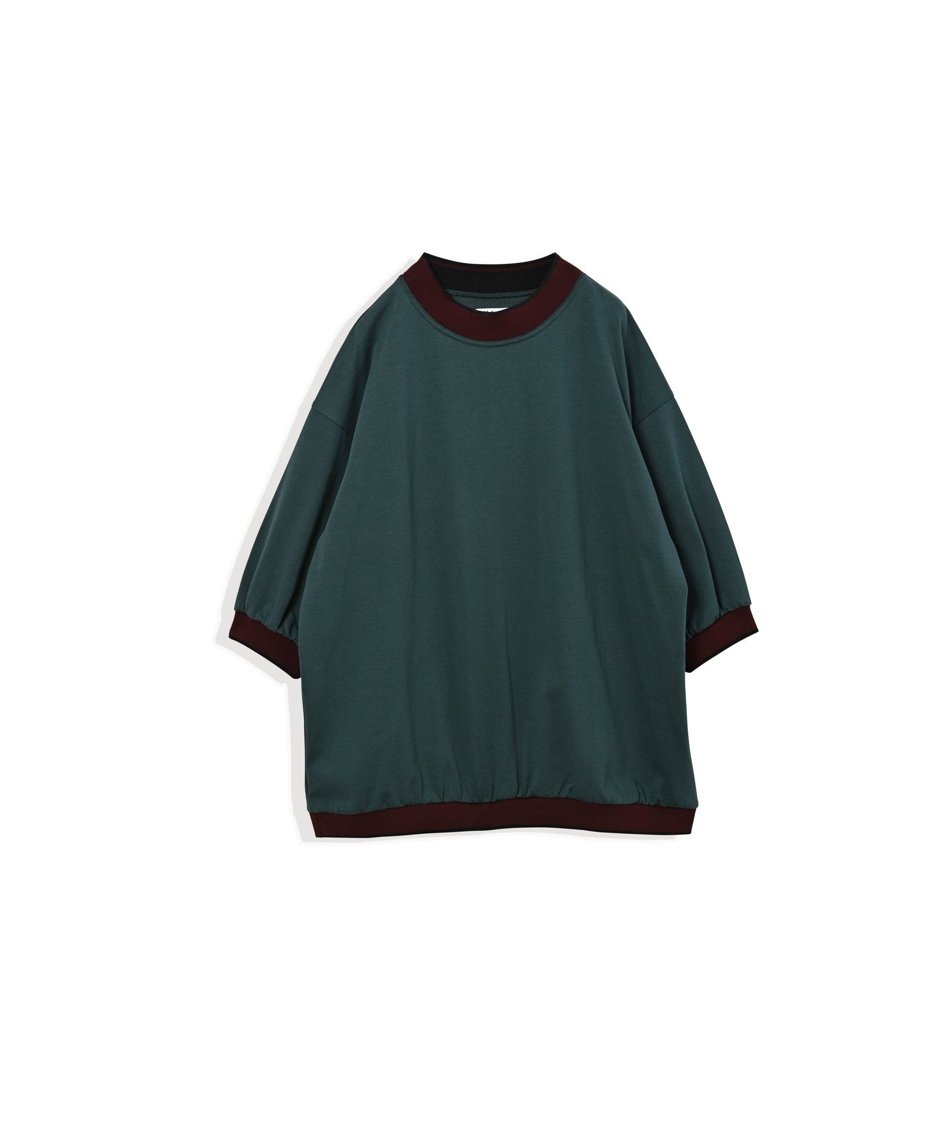ラインカラーが目を引くニットリブのワイドTEE。