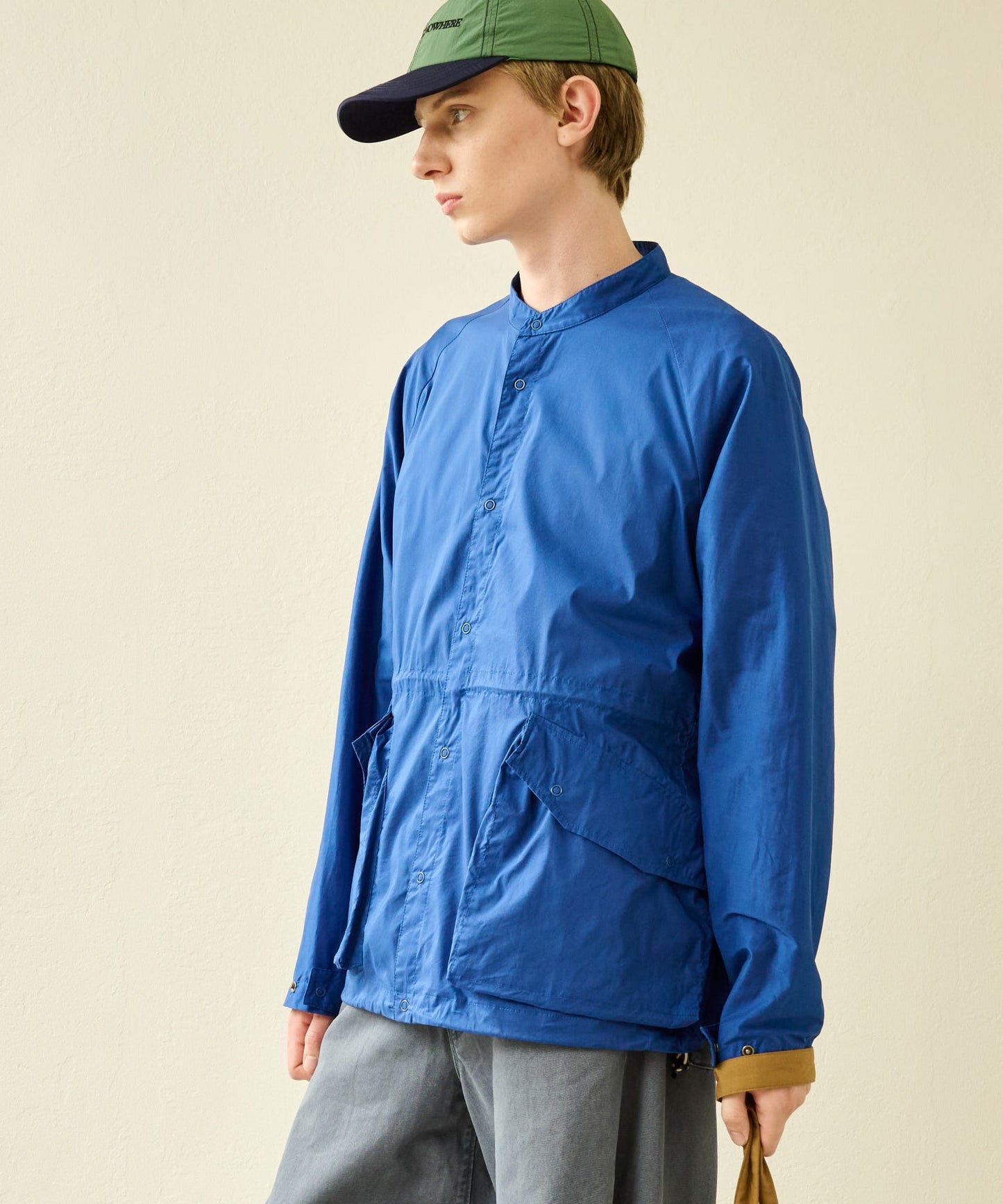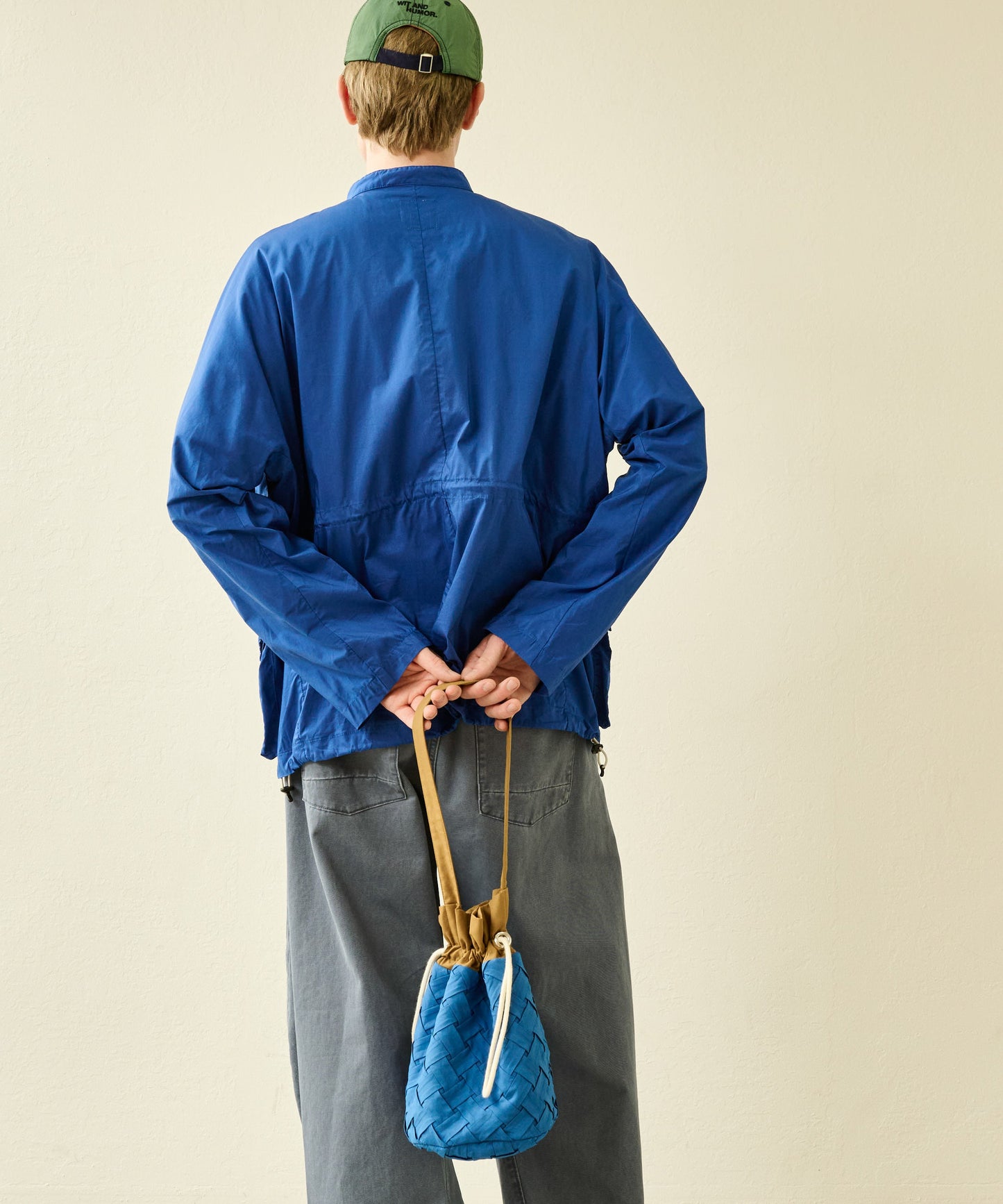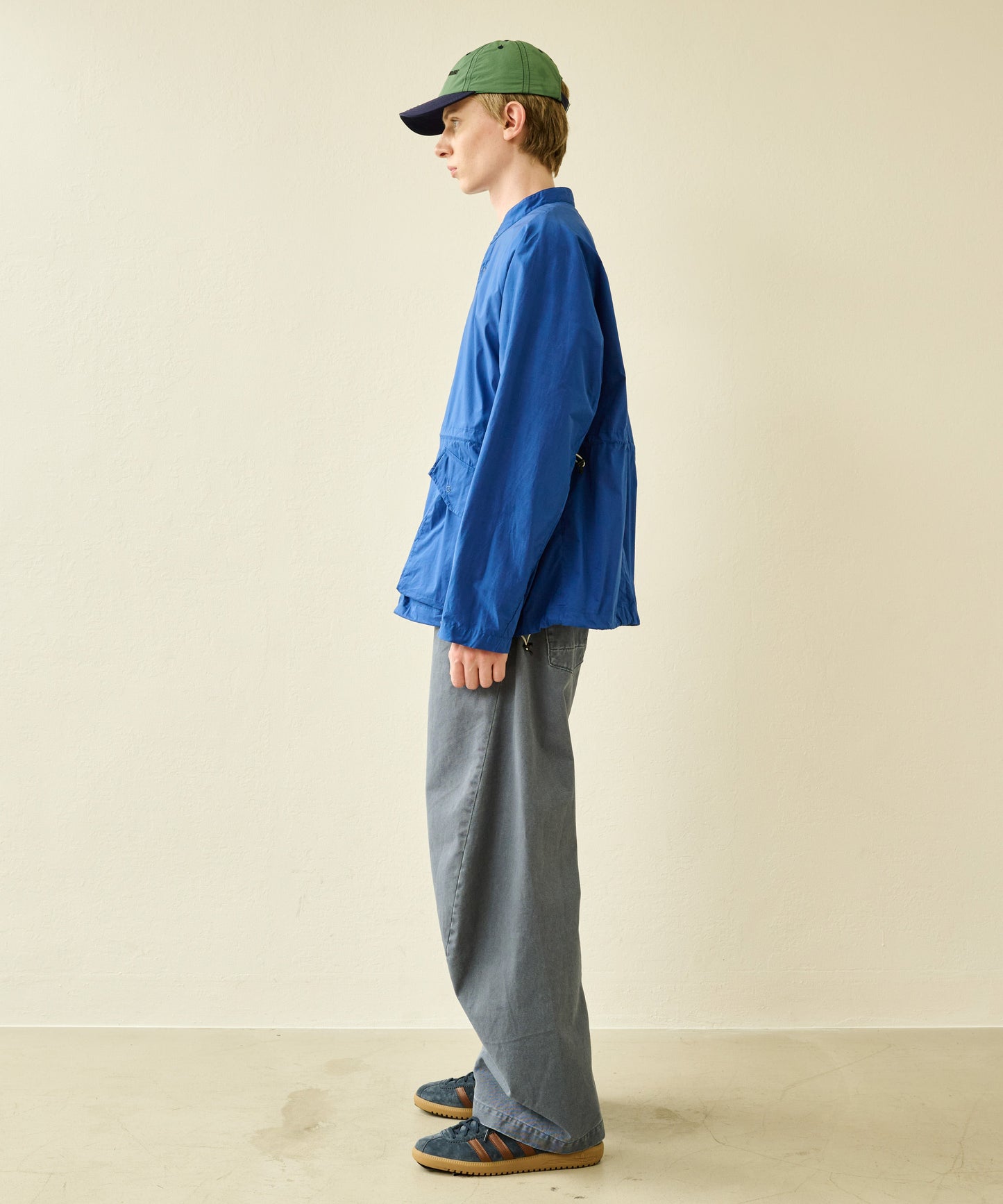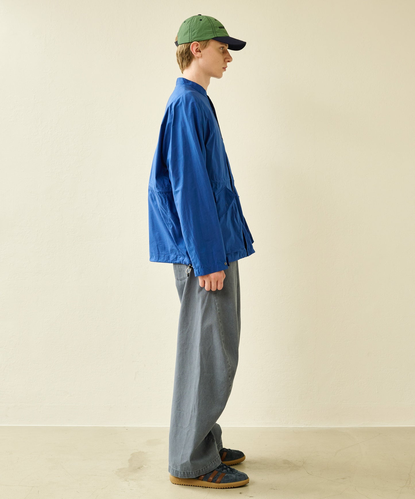 大きめのボックスシルエットサイズは裾を絞って着用が可能なドロスト付き。