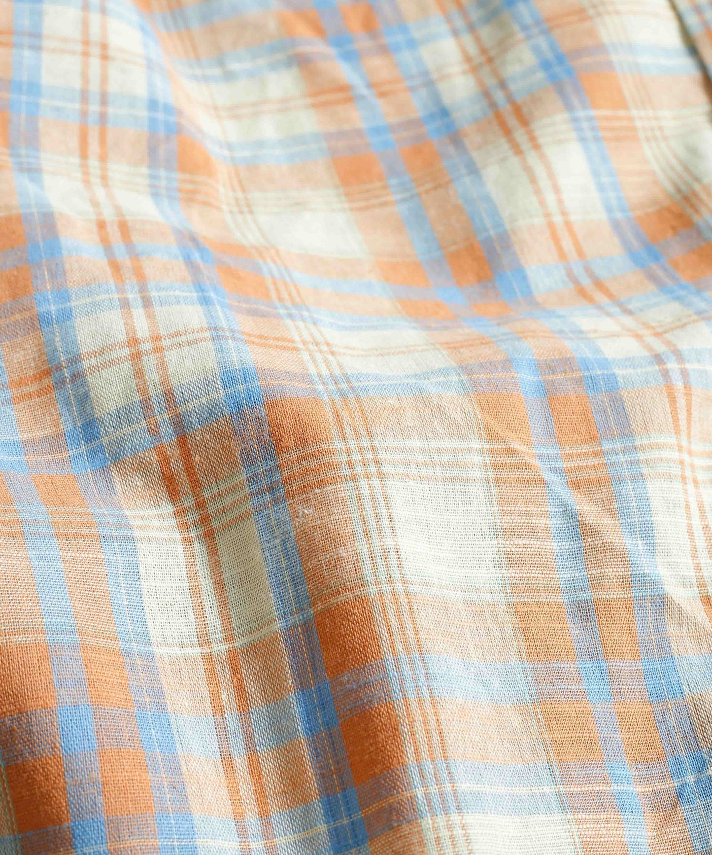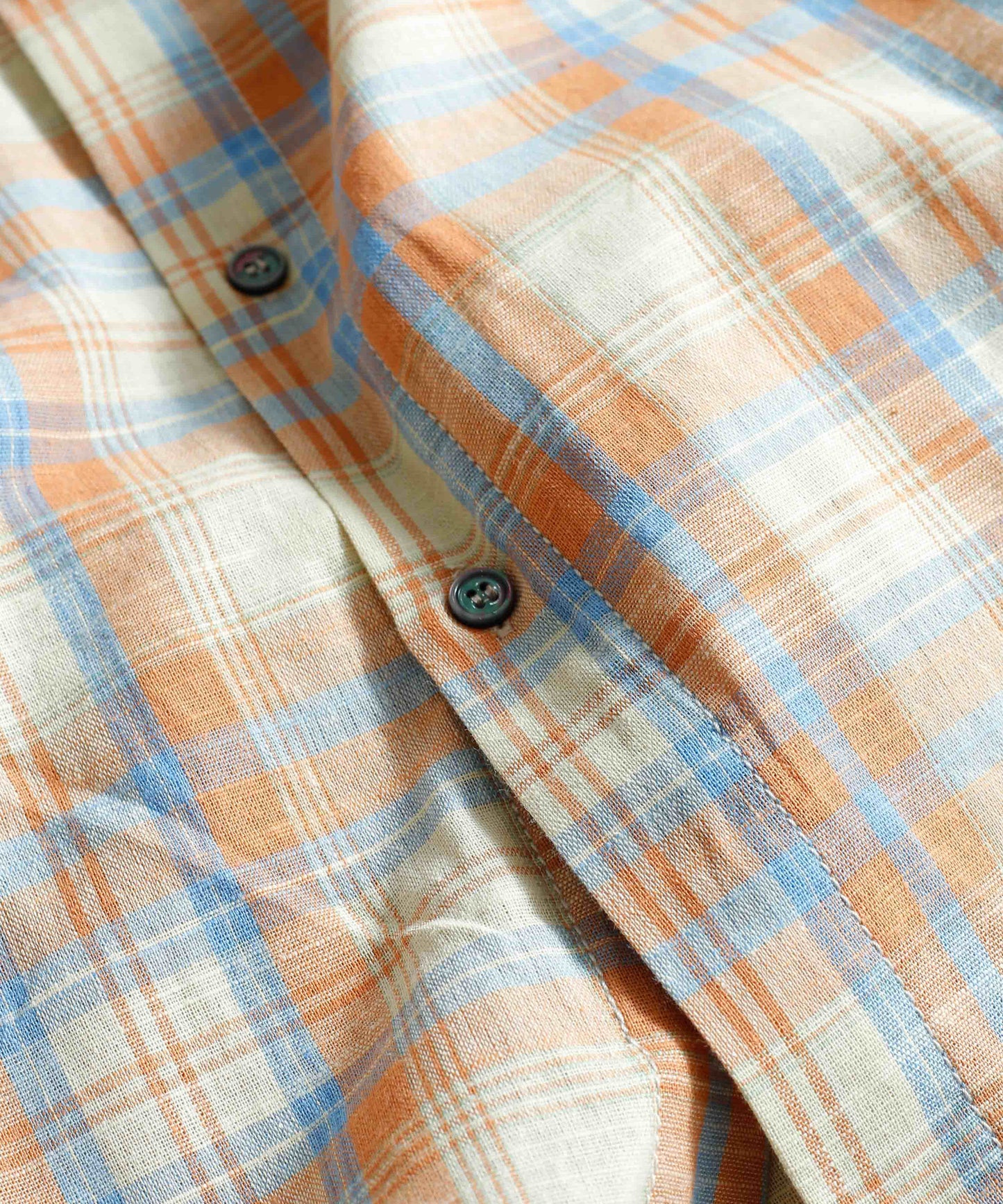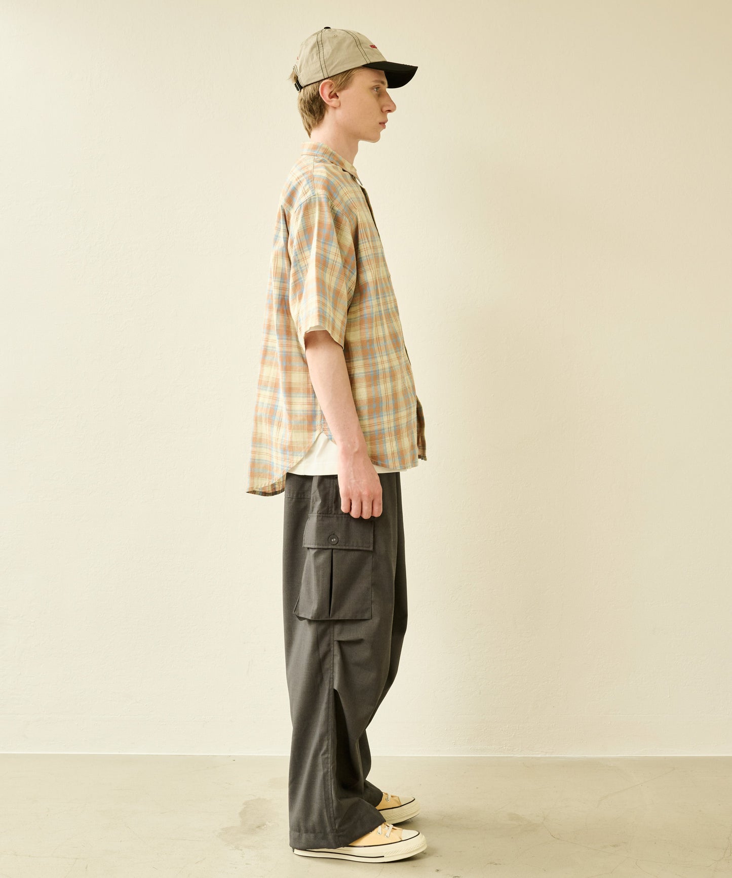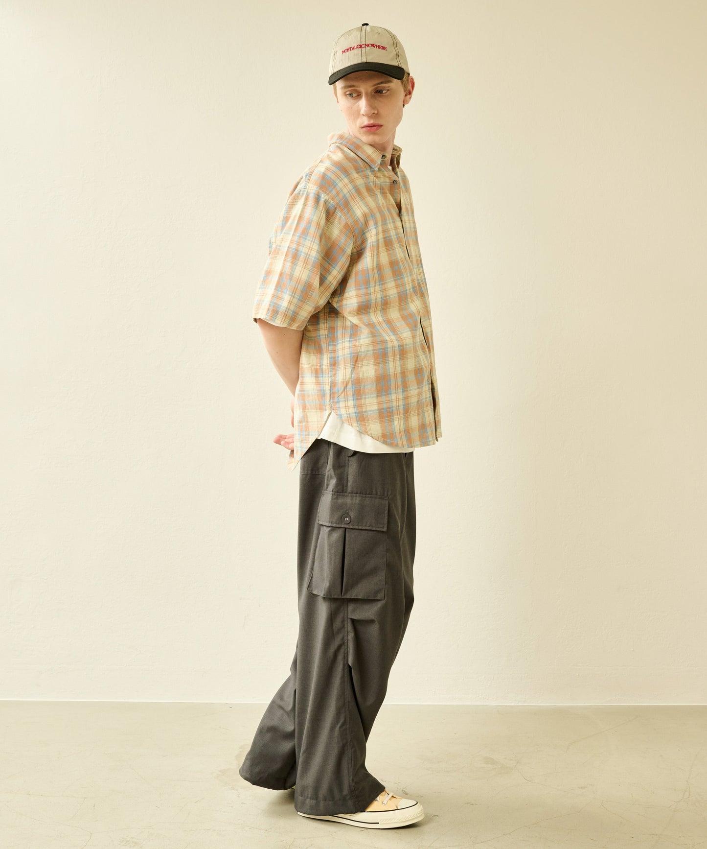 ショートスリーブのチェックと無地の2素材で展開したシャツ。