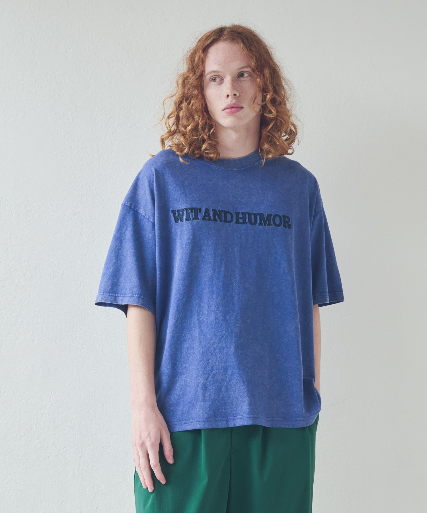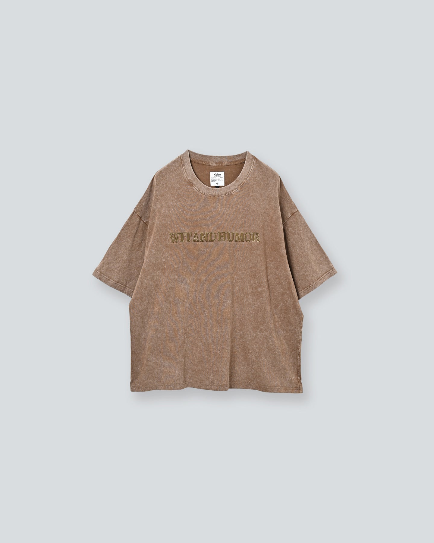 ブランドステイトメントの「WIT AND HUMOR」を生地を縁取って刺繍したスペシャルな1枚。