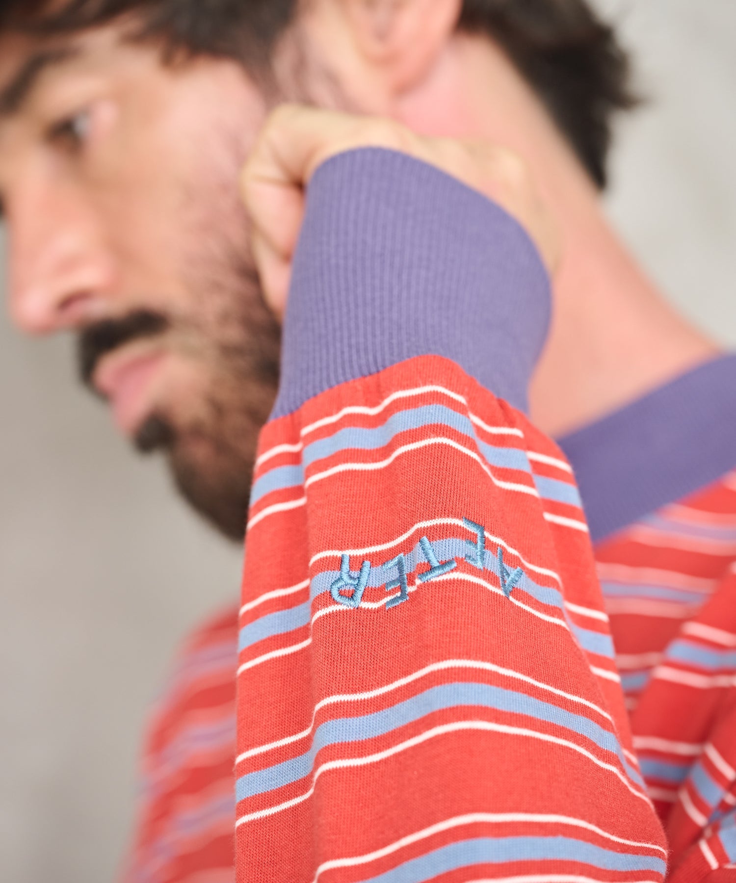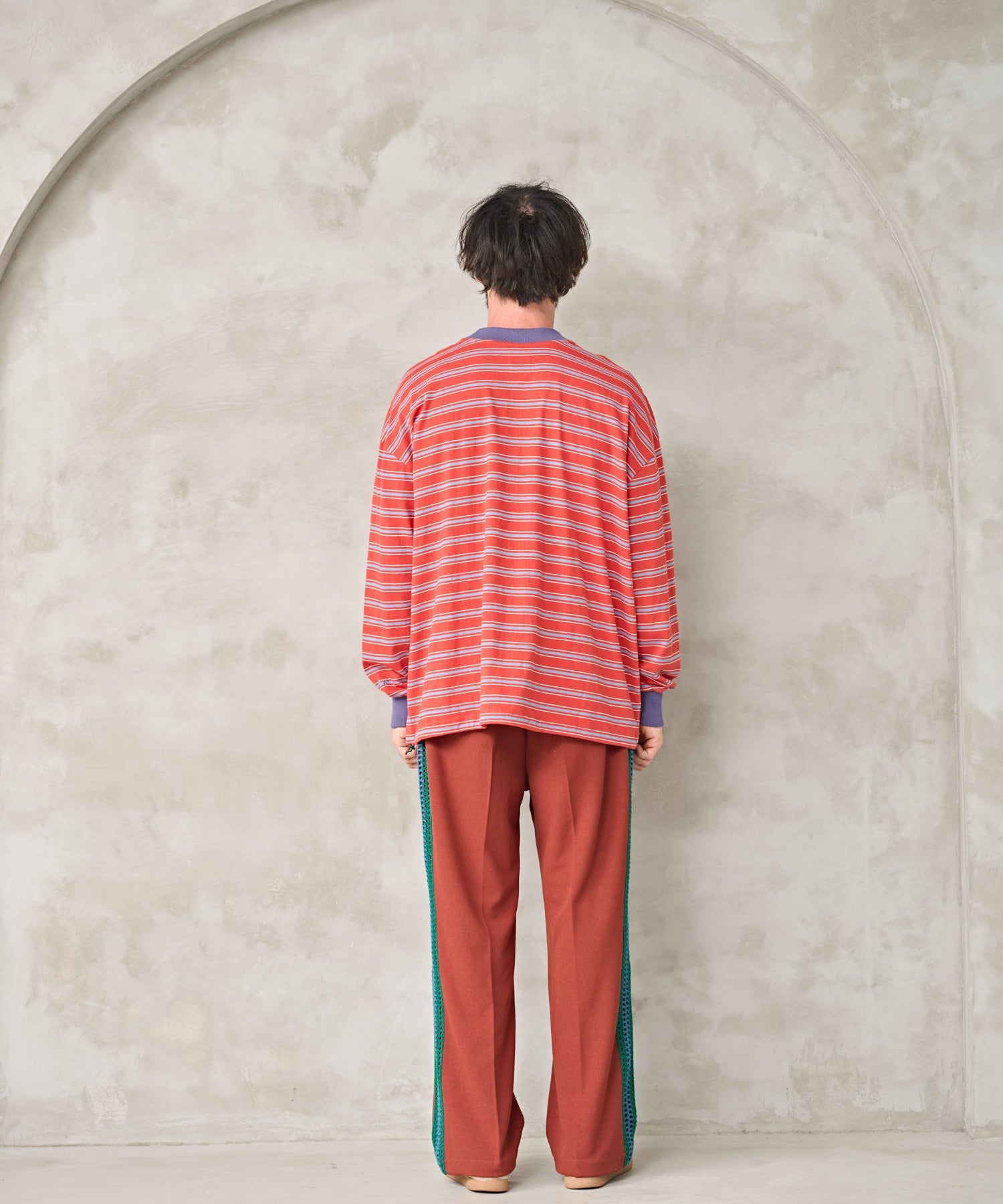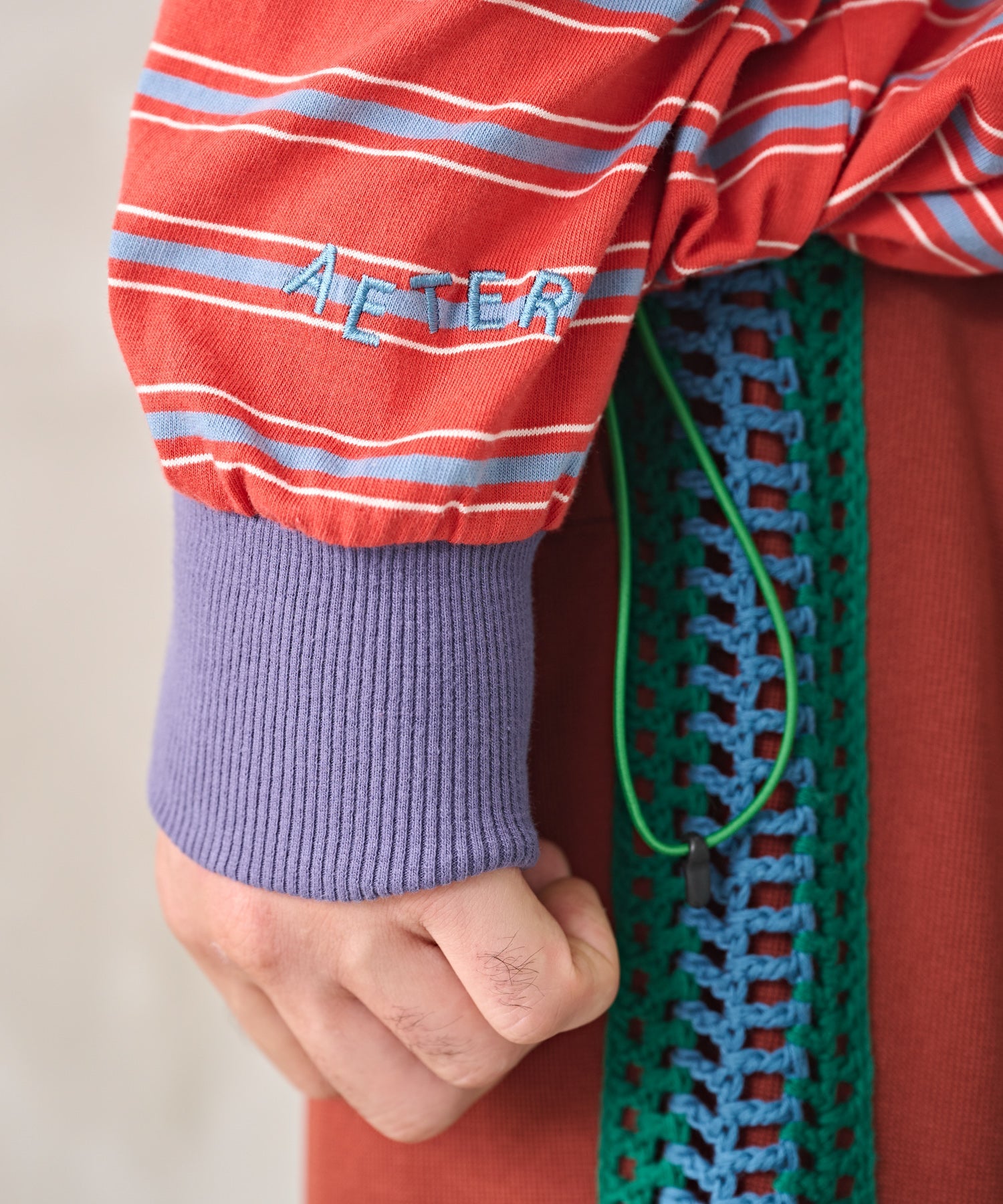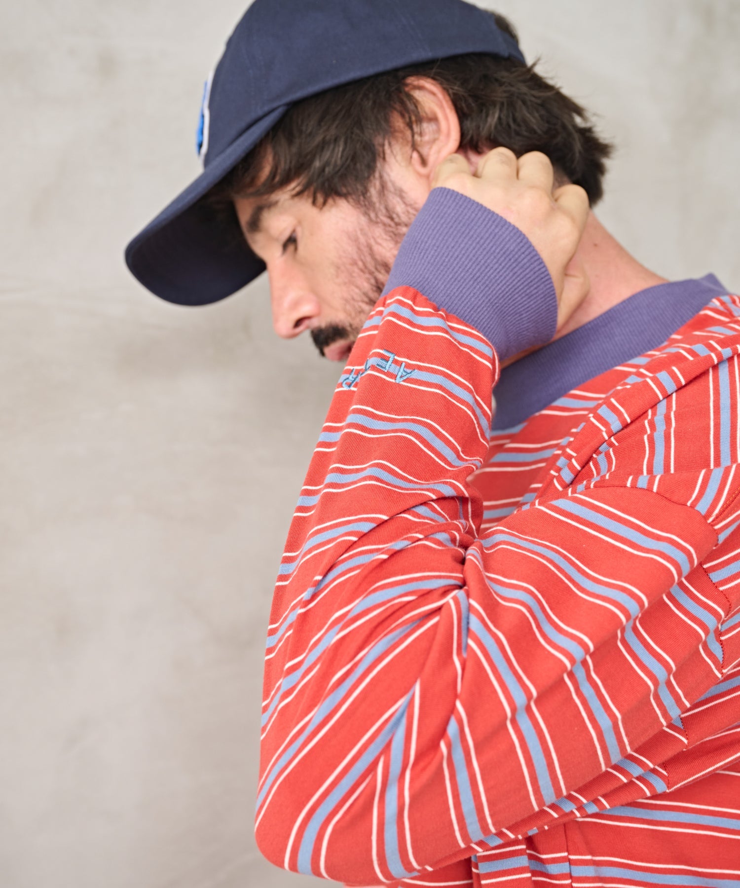 ヴィンテージテイストのボーダーカットソーを使用したトップス。