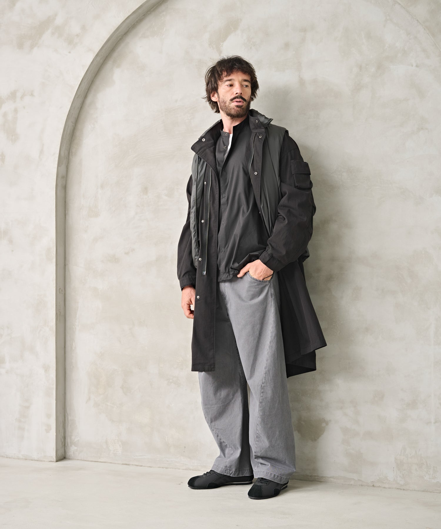 ウエスト内側にドローコードを入れ、シルエットを変えてスタイリングが可能。