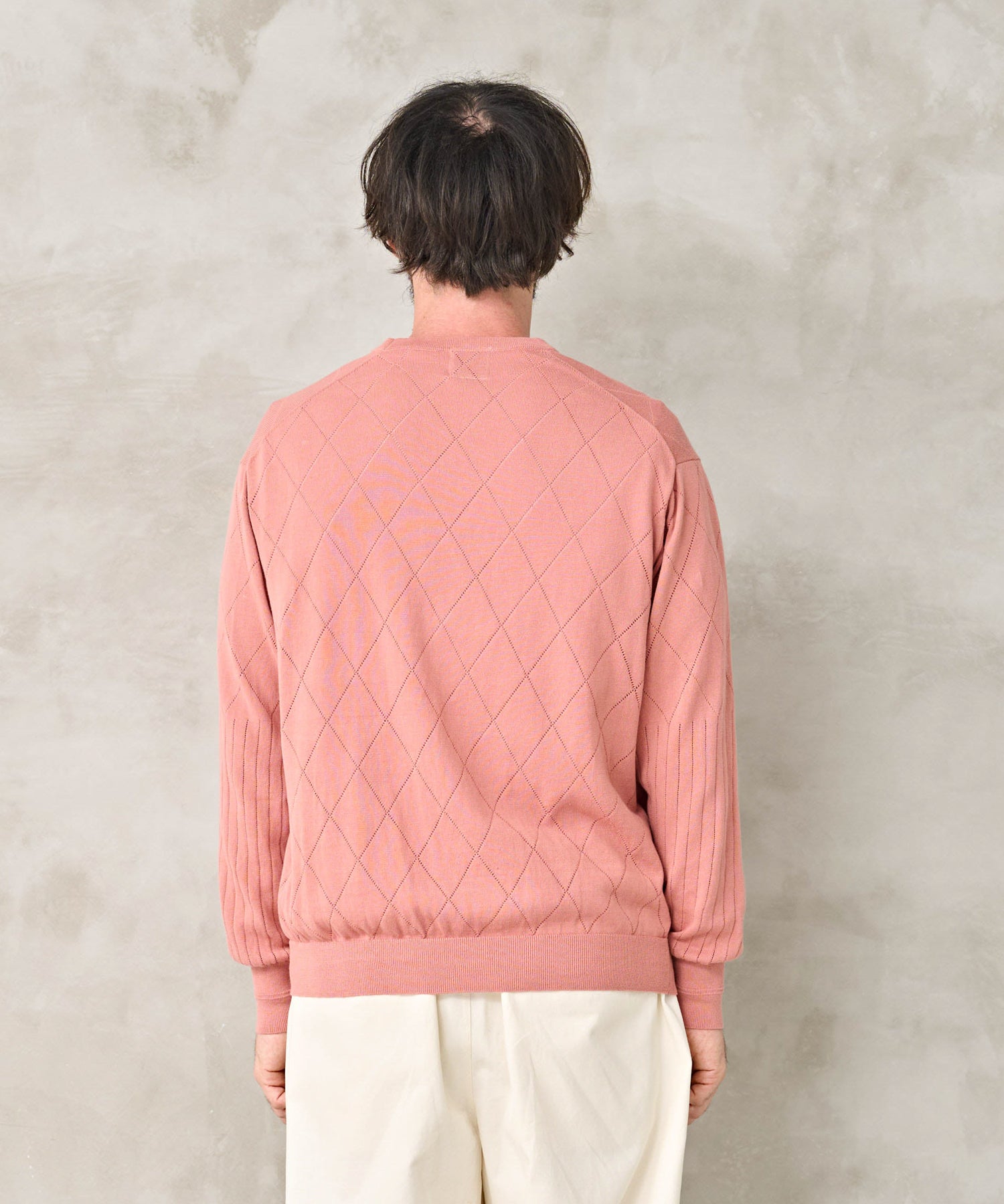 菱形の編み地をストライプの編み地を組み合わせたデザイン。