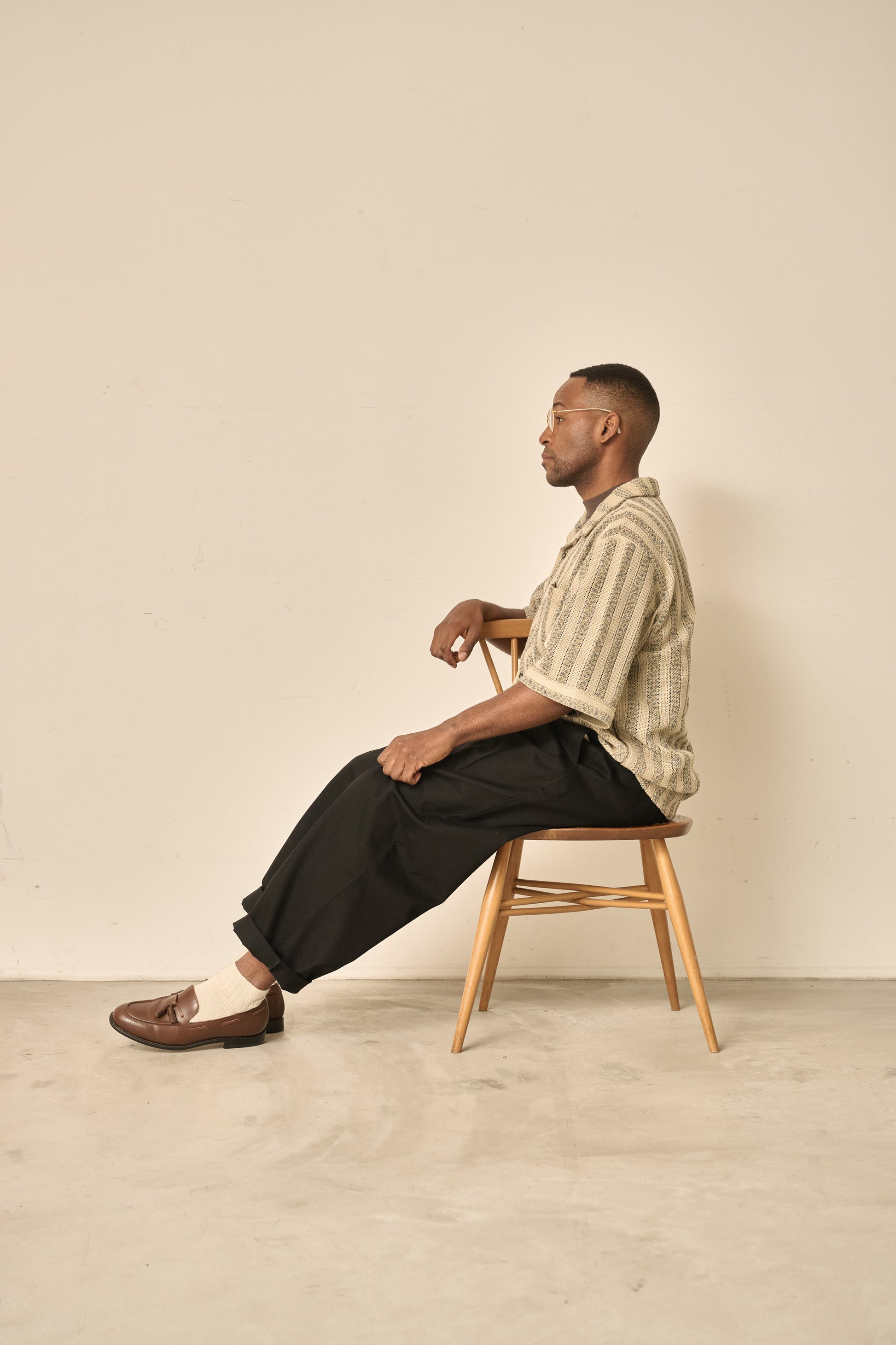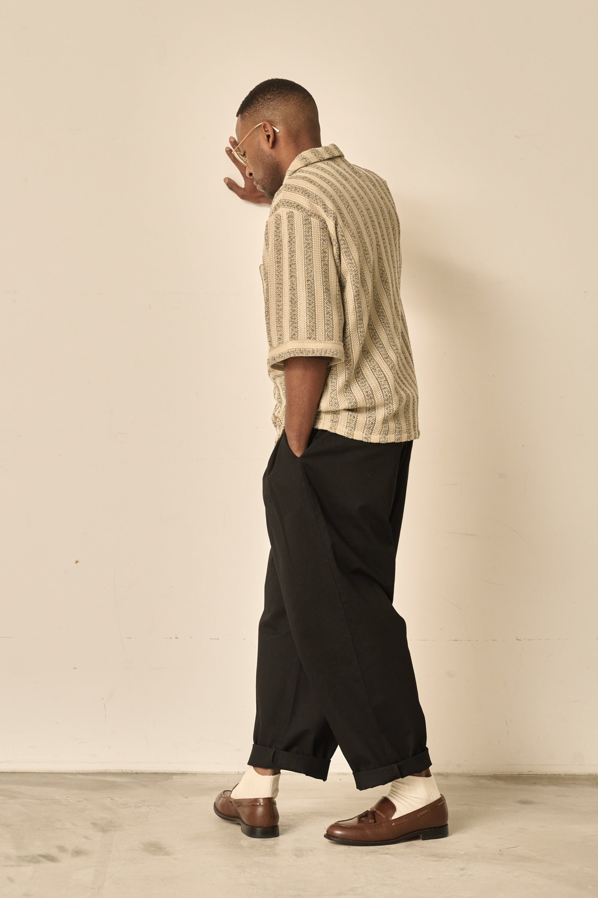 ゆったりとしたシルエットと風通しの良い素材が夏に重宝する1枚。
